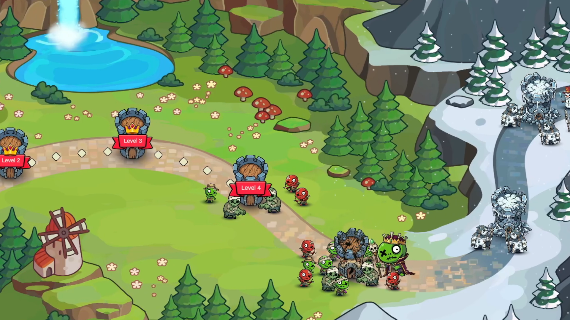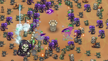 2) Earlier access to AOE type attacks/change order of upgrade unlocks. The first few attack upgrades: bow and freeze spell are both effectively single target. Lightning would be a far more effective early upgrade because it can chain eliminate many small enemies in the early waves which is what you face. Cursor freeze is only really useful in later waves when you have more heavy hitting boss monsters to target.